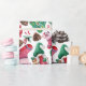 Vattenskärtlig juldesign med gnomer, gräs-kon, Julgranar och andra helgdag-symboler i rött och grönt