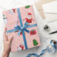 Jultecken på rosor och guld- glitter som slår in papper. Mönster inkluderar jultomten, snögubben, den polara björnen, julgranen, pepparkakan, renen, gåva boxas, att lagerföra och candy cane.