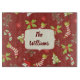 Ett underbart jultema, det här skärbordet har en röd bakgrund med grönt mistletoe och pepparkaksgubbar. Med grönt Julgranar ställe i dag! Bild skapat av: AMBillustrations http://www.etsy.com/shop/AMBillustrations/ Ram för namn: PretypeGrafik design (https://www.etsy.com/shop/Prettygrafikdesign)