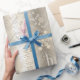 Denna julklapp har en vacker mönster-text med snöflingor i skuggor av skuggande guld. Några av texterna innehåller "Merry, Bright, Noel, Season's Greetings, Peace, Joy och Glad helg". Sök i ID257 om du vill se andra alternativ för färg och ytterligare produkter med den här designen.