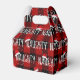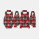 Vit NAUGHTY-text med snöflingor och Jultomten-lock på röd och svart buffelbaksida.
