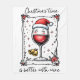 En lustig och glad juldesign visar en söt vin-helgdag fylld med rött vin, komplett med ögon på glaset och en julhatt på toppen. Glaset i vin är framkantat av stjärnor och en uppsättning klockor, vilket ger en festlig beröring. Den handskrivna texten lyder: "Jultid är bättre med vin." Den här fina designen finns på en rad olika produkter och skapar den som en perfekt för vin älskare.