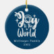 Lägg din familj namn och ditt år till den här Nativitetsscenen Joy till världsutsmyckningen eller anpassa den till vänner, familj, medarbetare, personal eller studenter som en tankfull julklapp. Uttryck det verkliga skälet till julsäsongen när vi firar Jesus födelse. Blå och vit jultomtscen som berättar Joy för världen.