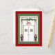 Det här är en dekorerad dörrscen med gröna, genomskinliga prydnadsföremål, nötkrackare och god jul ovanför dörren. Se matchande föremål i mitt glupska julgalleri