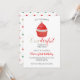 Det är årets mest fantastiska tid! Santa cupkaka först födelsedagsfest inbjudan med vattenfärg, tomtkaka och rödpolka.