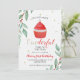 Det är årets mest fantastiska tid! Santa cupkaka först födelsedagsfest inbjudan med vattenfärg, tomtkaka och rödpolka.