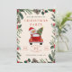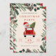 Ge glädje åt din högtidsfirande med denna Santa-in-a-Car-julpartyinbjudan. Med en glad illustration av Tomte som kör en röd bil med ett dekorerat julgran, omgiven av festlig grönska och tallkottar, sätter denna design tonen för ett roligt och familjevänligt firande. Perfekt för barnkalas, grannskaps-sammankomster eller avslappnade julfiranden. Helt anpassningsbar mall med redigerbara textfält för datum, tid och plats. Ett lekfullt sätt att inbjuda gäster till din höjdthsfest.