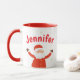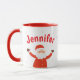 Njut av en mysigt, helgdag-dryck med Jultomten Personalize Kaffe Mugg. Det här festliga kaffet mugg har söt Jultomten med snö på baksidan. Anpassa namn och text.