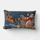 Kudder den charmiga julen för en vintag presentera jultomten som rider hans sleighfullt av leksaker ovanför en vintertown.