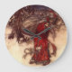 Clock med Arthur Rackhams illustration Jultomten (1907). En röd robed Jultomten bär en påse Julklapp i ett snöträ. Elves flyger vid hans sida. En glad julklapp!