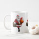 Bakgrunden till färg kan ändras: CUSTOMIZE IT - EDIT - BACKGROUND vad en fantastisk idrottsman pappa jul är - springer med en stor tjock säck fullt av presenter och en basket som textureras med årshälsningar