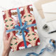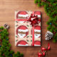 Jultomten julinslagning papprare med en mönster brunt flått Jultomten ansikte på festlig grund. De mindre dekorationerna är krokbär, löv, grenar och krukor. Det övergripande färg-schemat är rött, brunt och brunt. Välj bara din storlekare, lägg till den i din vagn och ha ett mycket god jul!