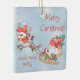 Roligt jultomten Gnome med Reindeer Helgdag Ornament. Julgnom på ett slö med presenter och ett träd som dras av en tecknad med en gnomrenare vattenfärg på en ljusblå snöflingbakgrund. Ändra texten genom att klicka på Anpassa ovan.