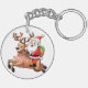 Ett lycklig Jultomten rider sina renar för en God jul och en serenisk Helgdagar. En söt, glad Jultomten för alla