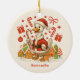 Lägg till helgdag charm till träd med den roliga jultomten! Med en glad gåva i en Santa kostym som håller ett candy cane gör det perfektens festlighet eller gåva till familj och vänner.