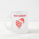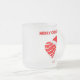 Du kan beundra min vackra teckning som jag kallar "jultomten Heart", ett rött och vitt strimlat hjärta med en julhatt, med texten "God jul". Förutom på det här lilla frostade glaset mugg gör det här lilla frostade glaset mugg den perfekt julklappen.