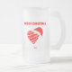 Du kan beundra min vackra teckning som jag kallar "jultomten Heart", ett rött och vitt strimlat hjärta med en julhatt, med texten "God jul". Förutom på det stora frostade glaset mugg gör detta stora frostade glas mugg den perfekt julklappen.
