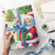 Denna glupska pappra utformning belyser Jultomten i lekfulla och visuella attityder. Scenerna är bland annat tomten som dansar med polkagrisar, som rider ett leksak tåg fyllt med gåvor, isar på en frusen damm och som dekorerar ett glansande Julgran. Mönster är dynamiskt och färglöst med ljusröda, grönt-, vit- och guld-skuggor som ställs mot en mjuk snöbakgrund. Små festliga detaljer som prydnadsföremål, snöflingor och hylssprit är spridda över hela världen, vilket tillför lite charm och helgdag magi.