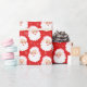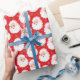 Vintage stil illustrerar ett Jultomten ansikte med en rosa julhatt mot en mönstrad röd bakgrund på detta omslag pappert med ett reflexutseende.