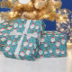 Utformningen av helgdag i julklapp och presenter på akvabas med snöflingor.