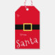 Santa kostym röd. En underbar märkre för en julklapp i de bästa klassiska traditionerna. Du kan redigera texten på baksidan av märkrn.