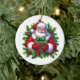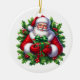 Den här keramiska julprydnaden visas med en festlig tomttryckning. Anpassa det här objektet med den här mallen eller köp som visas.