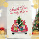 En bra presentväska med ord Jultomten kommer till stan och en söt liten bild av en vintage röd lastbil som har en Julgran, helgdag-gåvor, en liten fågel, och tomathatt.