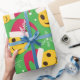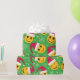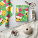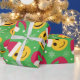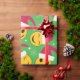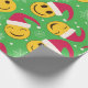 Det här är gullig jul när lycklig leende ansikte mönster och bar tomten med lite snöflingor på gröntens bakgrund. Det är underbara presentemballage pappert för Helgdagarnas säsong