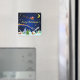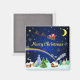 Vackra snowscapes med Julgranar, hus, en man från snö och en regnbåge över snö som faller från himlar. Jultomten flyger över Crescent måne på julnatten.