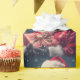 Festiv bild av Jultomten som innehåller en omsluten present mitt i snöflingor som lätt faller. Genom att fånga julens värme och glädje står tomten i sitt klassiska röda kostym med ett glatt leende, redo att sprida glädje över helgdag.