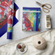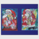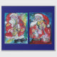 Färgfull, vit och konstnärlig akrylmålning ,Tomten spelar fiol på vinternatten, uggla, blommigt, prydnadsföremål, vinterplantor, hullbär i ljust rött,grönt,vitt,gult färg. av Bulgan Lumini (c)