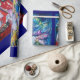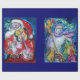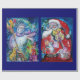 Färgfull, vit och konstnärlig akrylmålning ,Tomten spelar fiol på vinternatten, uggla, blommigt, prydnadsföremål, vinterplantor, hullbär i ljust rött,grönt,vitt,gult färg. av Bulgan Lumini (c)