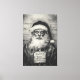 En mycket realistisk, svartvit bild av Jultomten i ett mag-scenario. Den detaljerade bilden visar tomten i hans traditionella attityd, men med ett utslitat, plågat utseende, kompletterat med en skylt som hänger runt hans nacke. Bakom honom finns ett mätdiagram för vintagen som ger en grym, dramatisk ton. Detta okonventionella ge, som är ett mystiskt, rebelliskt sätt att vrida till den älskade helgdag-ikonen.