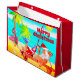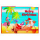 Den här presentpåsen i God jul helgdag har Jultomten vid Beach. Han är avslappnad och njuter av sol, handflatan träd, hans rör, några roliga vinterfåglar och en rosa flamingo med en julhatt och en andedräkt.