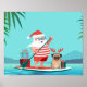 jultomten christmas hund, helgdag illustration Surfing slappna av, sportstranden julafton surfa, tecknad sommarsolig, surfbosfull, söt julsemester med surfbräda, sol-vågsskägg, teckning-semestergåvor, surfarvatten, rolig lycklig, havtropisk dammpug, christmas jultomten hund.