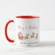 Ett julkaffe eller en hett kakao mugg med en illustration av att Jultomten rider en ren, omgiven av en lustig helgdag. Anpassa detta mysiga helgdag mugg med din familjs namn eller anpassningsbar för en speciell beröring. Det är perfektens för barn, barnbarn eller någon familjemedlem som kan njuta under julhelgen!