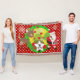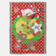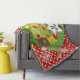 Jultomten och renårens helgdag kastar filt, färglöst, roligt, söt och glad! Jultomten är klädd i rött kostym och med en påse med leksaker som flung på ryggen, ett Julgran med rött bollar, söta bruna renar, snöflingor och vitt polka dots mot bakgrund av rött, grönt och gult. Det finns också en stjärnformsbanderoll som du kan anpassa med din monogramsstart!