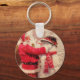Jultomten och snögubbe i snöfall nyckelring