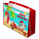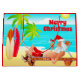 Den här presentpåsen i God jul helgdag har Jultomten vid Beach. Han är avslappnad med sina surfingbrädor och njuter av sol, handflatan träd och hans rör.