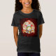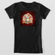 Fina bilder på en t-shirt av Jultomten och vänner på en röd firandebakgrund.