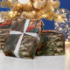 Charmig vintage som slår in papper som långt presenterar jultomten på hans till den nästa familjen.