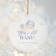 Kemiska prydnadsföremål i "Santa Baby"-duschen har en söt, festlig utformning med baby i en blå julhatt med mjuka moln och stjärnor. Den användor ett rödskript och pastelltoner som skapar en mysigt helgdag, perfekt för en vinterbabydusch.