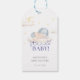 Märkrn "Santa Baby" har en söt, festlig utformning med baby i en blå julhatt med mjuka moln och stjärnor. Den användor ett rödskript och pastelltoner som skapar en mysigt helgdag, perfekt för en vinterbabydusch.