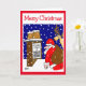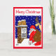 Julmeddelandet från lycklig med Jultomten och en QR-kod på en skorsten. Ett roligt julkort med ett tecken som ber Pappa jul att checka in genom att skanna en QR-kod. God jul-kort. Lägg till ditt eget meddelande inuti.