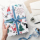 Jultomten Reindeer Gräs Träd Mittens Mönster Wrapping Papper