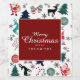 Den här helgdag-vin-etiketten har Jultomten, renar, Gräs, Träd, Mittens och snöflingor på vit bakgrund. Typografin "God jul" är vit. Du kan personalisera hälsning och namn.