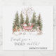 Vattenskärtligt Jultomten med lår, presenter och skog mot vit bakgrund.