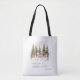 Vattenskärtligt Jultomten med lår, presenter och skog mot vit bakgrund.