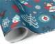 Jultomten Sleigh Reindeer Gräs Träd Art Mönster Presentpapper