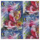 Färgfull, vit och konstnärlig akrylmålning ,Tomten spelar harp i månljuset, uggla, blommigt, prydnadsföremål, vinterväxter, barn leksaker, hullbär i ljust rött,grönt,vitt,gult färg. av Bulgan Lumini (c)